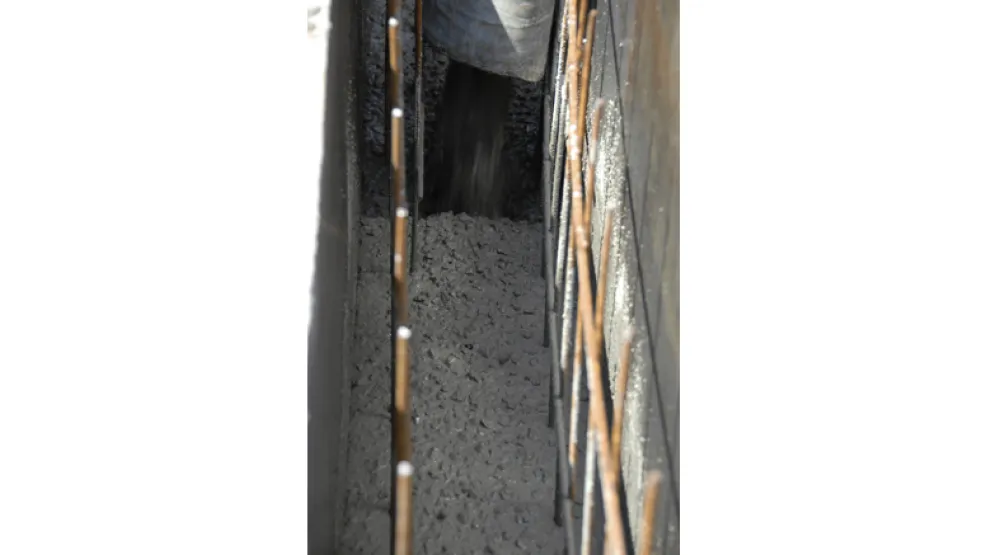 Béton prêt à l’emploi pour le remplissage des formes verticales et/ou fortement féraillées.