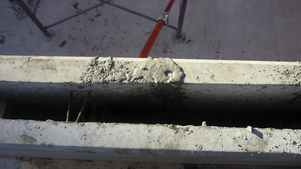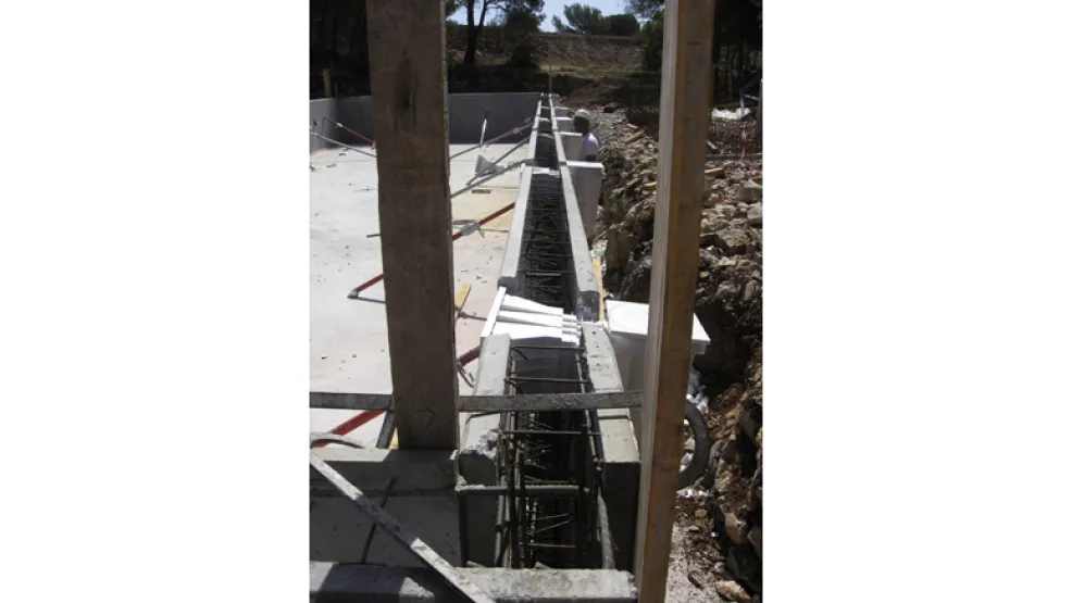 Malgré la présence de raidisseurs entre les panneaux pré-coffrés et la faible épaisseur à couler