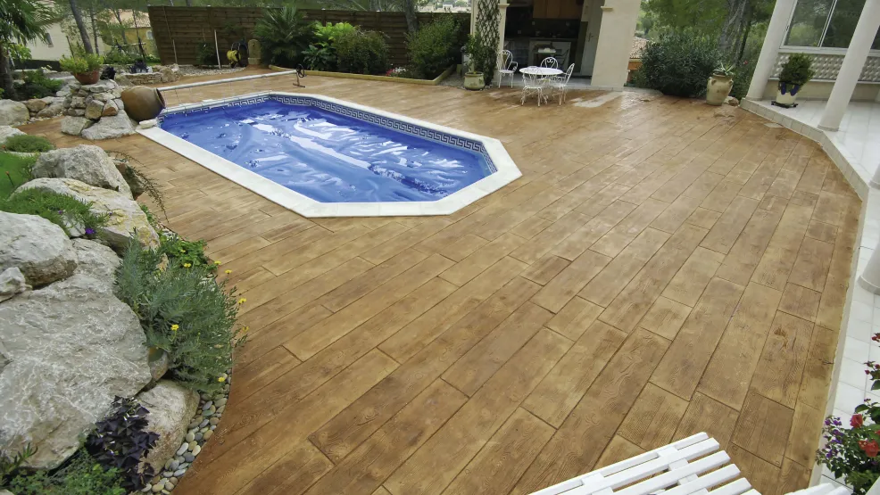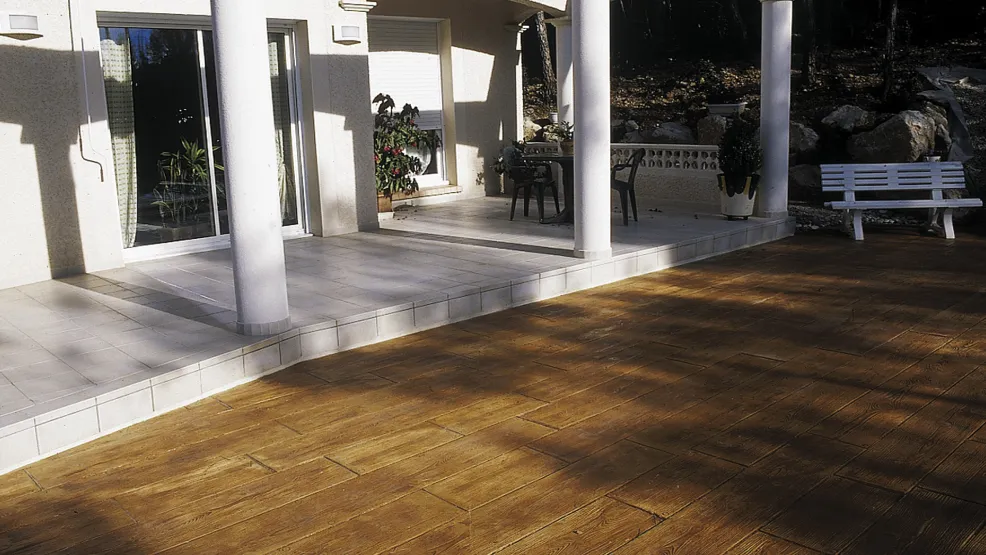 Béton décoratif reproduisant l’aspect et l’esthétisme de différents matériaux : dalles, pavés, bois