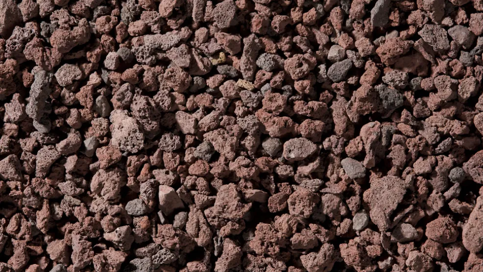 Gamme de granulats légers de différentes natures : pierre ponce, pierre pouzzolane (rouge de type massif central)