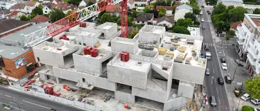 ● Conservatoire de Musique de MASSY : plus de 2100 m³ de béton autoplaçant ECOPact utilisés, réduisant les émissions de CO₂ de 30% et de 50% selon les formules, soit environ –180 t de CO₂ économisées.