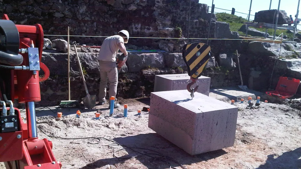 Ce chantier de préservation d’un monument historique est exceptionnel car il ne s’agit pas d’une restauration au sens habituel du terme mais d’une reconstruction à l’identique d’un édifice romain.
