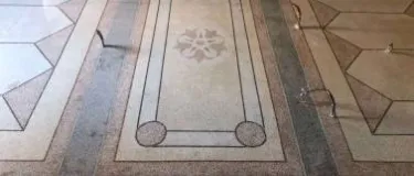 Au total, ce minutieux travail aura nécessité 1 mois de travail en atelier pour la création des mosaïques décoratives, puis une fois sur place 1 jour pour faire la chape, 1 jour pour poser les mosaïques, 1 jour pour faire le terrazzo de marbre et enfin 1 semaine pour le ponçage.