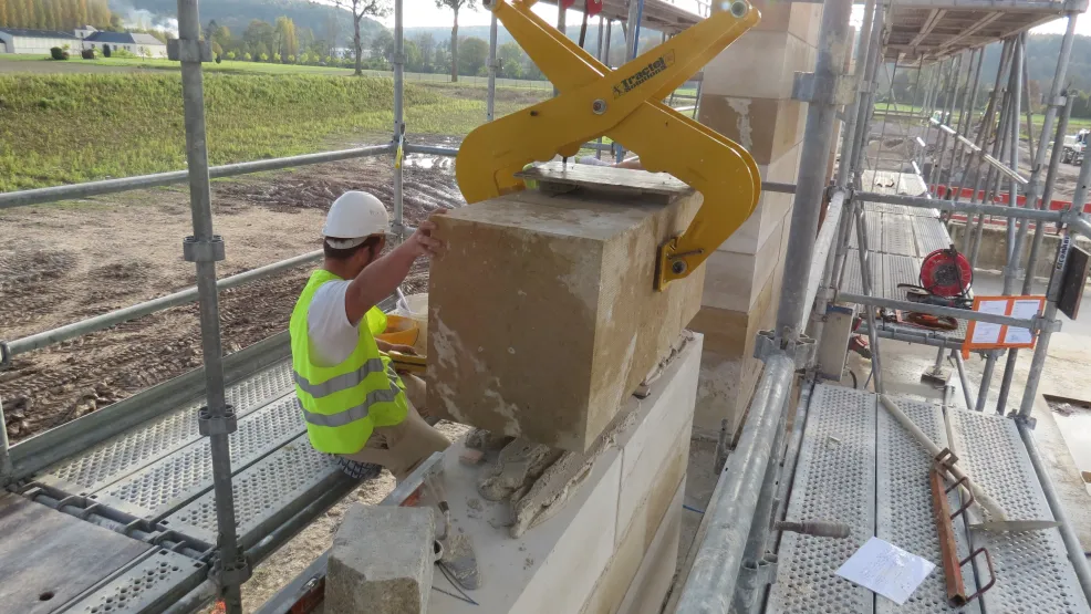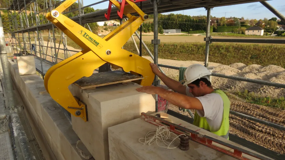 - opérer la pose à bain soufflant (directement sur le lit de mortier) des pierres de 500 kg à 2 tonnes;