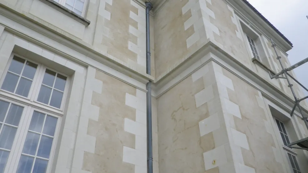 Ayant remporté l’appel d’offres lancé pour la restauration de la mairie de Neuvy-le-Roi, l’entreprise Hory-Chauvelin est intervenue pour remplacer certains éléments abîmés de l’appareillage en tuffeau et pour refaire les enduits.